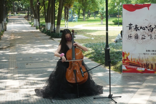 活动开展的同时,学院还为大家带来了精彩的节目表演。首先是孙瑞祺带来的大提琴独奏《萱草花》。“焉得谖草,言树之背。愿言思伯,使我心痗。”歌曲借萱草花,写尽了妈妈的挂念,诉尽了妈妈的衷肠,令人感动不已。节奏宛转悠扬,起承转合,具有抒情性,进而将感情的千回百转表述得酣畅淋漓,并且歌曲的歌词中以萱草花为意境,在歌曲中一以贯之,以物托情,借花喻人,更能将观众的感情投影在其中。