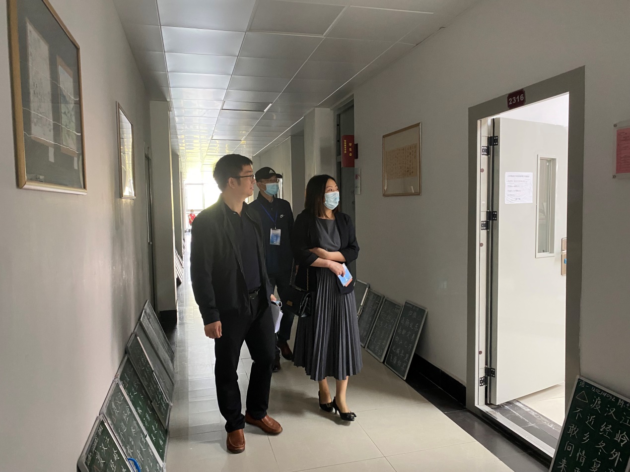 教务处葛修娟副处长等人亲临考场指导工作,到候考室、准备室、面试室等关键场地检查督导,详细了解面试考核工作的组织构架、考务培训、考场安排等各项措施的落实情况,对本次面试考场的出色组织表示肯定。