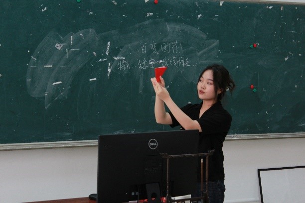 在比赛过程中,各位选手结合自身专业知识,以图文并茂的方式开展有关剪纸、色彩基础知识、涂鸦等为主题的授课。从导入到课堂总结,层次分明、教态自然、表达通畅且声音洪亮,授课方式生动有趣。选手们自主独立设计教案,通过多媒体课件搭配实体教具进行展示,充分发挥了上课“实战”能力和信息化教学能力。