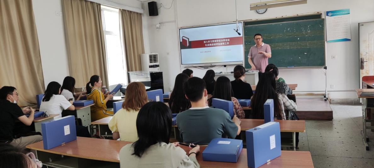 为进一步加强学院内涵建设和质量提升,根据《关于深入学习贯彻学校办学定位 扎实推进迎评促建等工作的通知》要求,5月25日下午,音乐与舞蹈学院组织全体教职工学习学校办学定位,布置下一阶段合格评估建设各项工作。