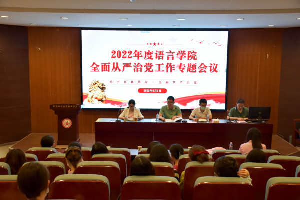 为落实责任、加强学习、提高站位,语言学院日前召开2022年全面从严治党工作专题会议。会议由学院党总支副书记丁祖保主持,全体党员教师参加。