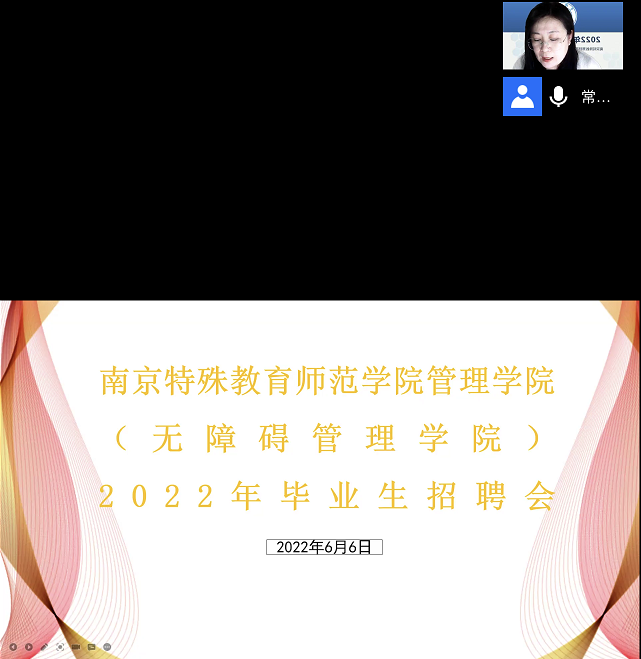 常晓茗副院长强调就业是民生之本,利用在线的便利方式召开招聘会议,以便发挥学院的桥梁作用,并宣布宣讲会开始。