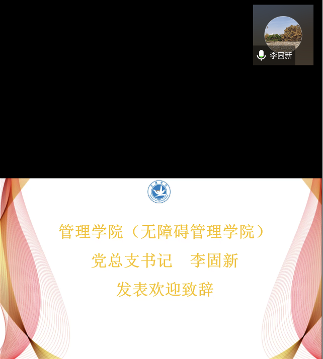 党总支书记李固新教授致欢迎辞,介绍学校详细情况以及管理学院(无障碍管理学院)发展情况,向与会者介绍了学院“以做优残疾人事业管理人才培养为核心”的办学宗旨,“公共精神、博爱情怀、禀道毓德、厚学强术”的院训,“质量立院、特色兴院、人才强院”的办学理念,以及推动中国特色的残疾人事业管理建设、着重培养特色人才的教学方向。