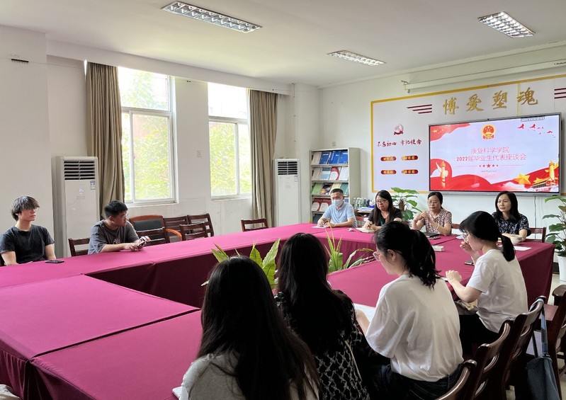 为更好的了解毕业生实际需求,推动学院教育教学、管理服务工作改革创新,迈向更高台阶,以优异成绩迎接本科合格评估,日前,康复科学学院组织召开2022届毕业生代表座谈会。学院党总支书记吴洪菊,副院长王姣艳、徐冬晨,毕业班辅导员孔迪老师以及18名学生代表参加。会议由党总支副书记吴填主持。