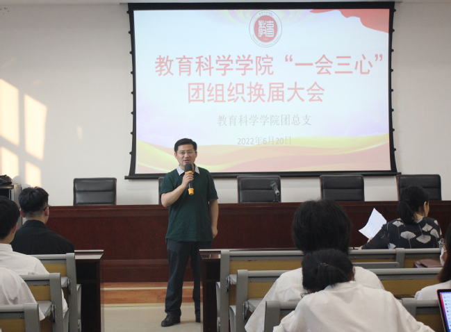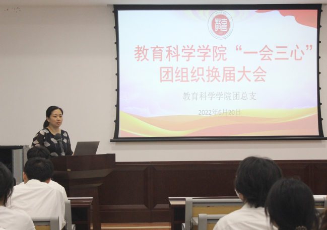 为了进一步发挥教育科学学院学生组织“自我教育、自我管理、自我服务、自我监督”的职能,充分发挥好桥梁纽带作用,更好地服务同学成长成才,教育科学学院于6月20日举行“一会三心”团组织换届大会,该院党总支书记吴月华,党总支副书记吴兴,团总支书记(学工办副主任)汪亮巧,“一会三心”指导老师李维翔、余宛琳出席会议,“一会三心”团组织全体学生到场。