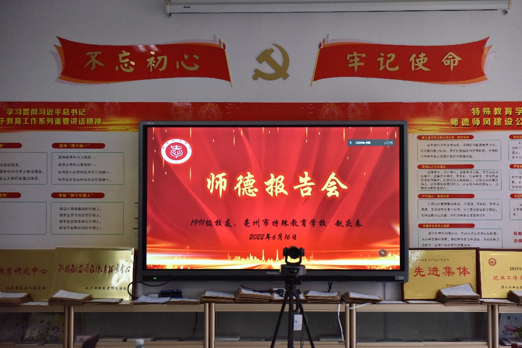 为进一步加强师德师风建设,厚植师范生的特教情怀,特殊教育学院于6月16日下午举办师德报告会,特邀全国特教园丁奖获得者、安徽省首届教书育人楷模、我校1995届优秀校友赵庆春老师作师德报告。报告会由特殊教育学院党总支书记叶亮老师主持,学工处朱玉飞副处长和严茹老师以及学院党政班子成员参加会议。特殊教育学院师生代表在2401会议室参加线下会议,2021级新生和2020级学生共计300余人参加线上会议。