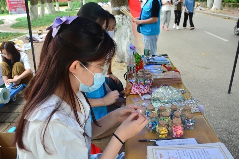 本次公益募捐售出的物品有一部分来自于学院桔灯创“益”公益设计服务中心根据自闭症儿童绘画作品独家设计的产品,学院将售卖所得钱款全部捐出,用于睿泽障碍人士服务中心孤独症康复项目。一件件精美的手工艺品摆满桌面,琳琅满目,它们既是孤独症患者内心情感的表达,也是劳动价值的体现。