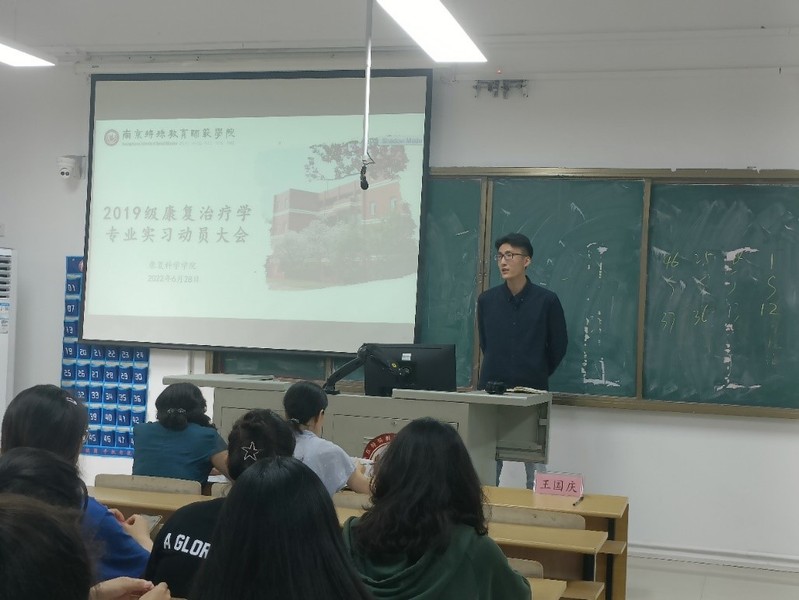 为推进康复治疗学专业实习工作的顺利开展,康复科学学院于6月28日下午召开了2019级康复治疗学专业实习动员大会。会议由康复科学学院副院长徐冬晨主持,学院党总支副书记吴填、康复医学系主任张秀伟、2019级辅导员王国庆以及2019级康复治疗学专业全体实习生参加了本次会议。