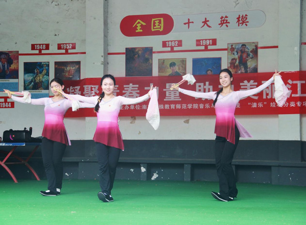 音乐与舞蹈学院“清乐”垃圾分类专项暑期社会实践团队,“清乐”乃中国五声调式中的一种曲式,有“清雅的音乐”之意。 “清”字体现出“垃圾分类”的环保理念,“乐”字则体现出音乐与舞蹈学院 “美育浸润”的特点。艺术作为美育教育的重要组成部分 ,音乐与舞蹈学院利用专业的优势,开展融合音乐、舞蹈等专业特色的“美育浸润计划”舞台表演活动,充分调动居民们的参与积极性,以“垃圾分类为主题宣讲,让居民们在经改编后的经典歌曲演唱与舞蹈表演中,了解垃圾分类知识,凝聚力量,携手助力美丽江苏。