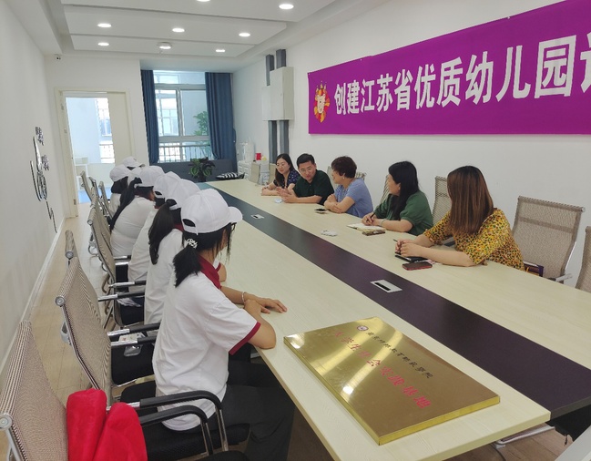 7月12日,吴兴和汪亮巧来到如皋市磨头镇,看望正在欧顿金童幼儿园支教的学生并召开了座谈会,认真听取实践团队的工作汇报,吴兴老师仔细询问关心团队实践、支教服务、衣食住行等方面等情况,对实践团队开展爱心支教活动给予了高度评价,赞赏他们用实际行动践行我校“博爱塑魂”的校训。副书记吴兴和方园长一起为暑期社会实践挂牌,为推进院校进一步合作奠定基础。