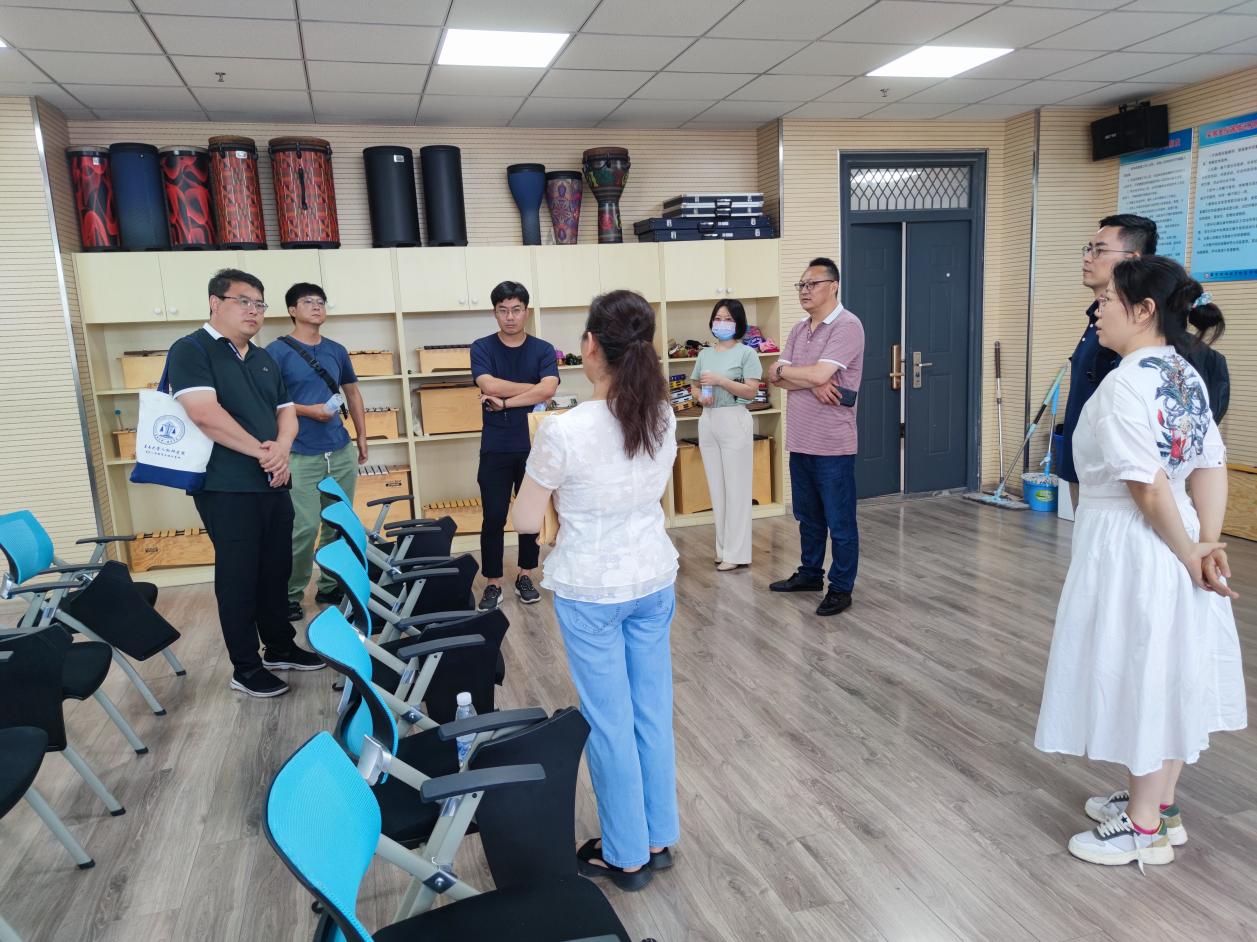 交流结束后,景明一行参观了音乐治疗实验实训室,对音乐治疗的干预方法、干预对象进行深入了解,并观看段冀州博士的微课视频。