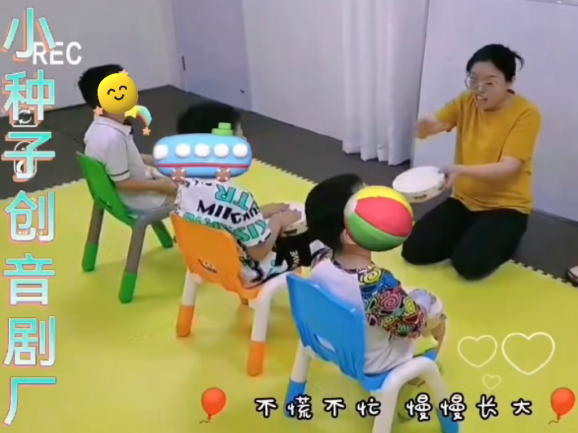 通过学习“小种子”专项实践团队的成员们了解到创音剧场是一套融合音乐律动、乐器演奏、音乐绘本、音乐游戏和音乐戏剧五大元素的创造性课程,老师通过音乐引导儿童参与音乐体验,在绘本故事、律动或游戏中提升分享式注意力、动作规划、语言与认知、社交能力等。