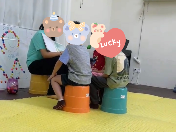 团体课的音乐律动环节和绘本环节中,“小种子”专项实践团队的成员们积极配合老师的工作,在老师的指导下与孩子们一起游戏互动。老师带着孩子们在游戏中配合音乐讲述绘本故事,小朋友们可以跟着音乐唱出绘本的内容,加深了小朋友们对故事的理解和记忆。