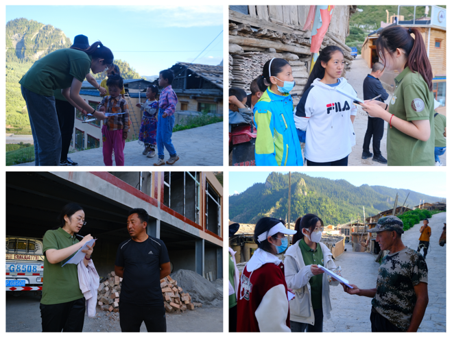 在扎尕那的村头、田埂,益桔团队成员礼貌问候、阐明来意、耐心解说、认真聆听、仔细记录,对村民和孩子有序开展访谈活动。尽管有语言沟通障碍,但调研工作依然得到了当地村民的大力支持。团队成员共发放并收集到“乡村学生本人上课情况调查问卷”四十余份、“乡村学生教育状况家庭问卷”三十余份,采访当地中小学生二十余人、家长十余人。