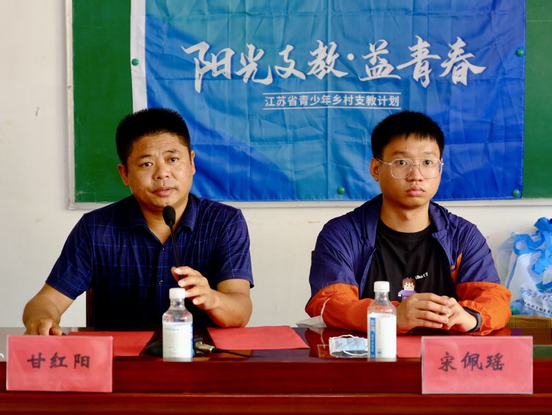 开营仪式中,甘红阳校长代表项目实施学校向与会嘉宾介绍了丁市镇中心小学的基本情况,并对南京特师的各位老师和志愿者们的到来表示欢迎,对所有参加此次夏令营的小朋友提出了殷切期许,希望大家可以在本次夏令营中有所得有所获;随后,谭忠副校长对南京特殊教育师范学院的建校历史和博爱文化进行了介绍,同时嘱托志愿者们发挥好此次项目实施方的作用,将平时所学运用到实践过程中,真正做到在实践中“受教育,长才干,做贡献”;作为此次“阳光支教益青春”项目的组织方和支持方,宋佩瑶部长对丁市镇中心小学为志愿者们提供良好的支教条件表示感谢,并表示会持续帮助希望小学改善教学环境,提升教学质量。