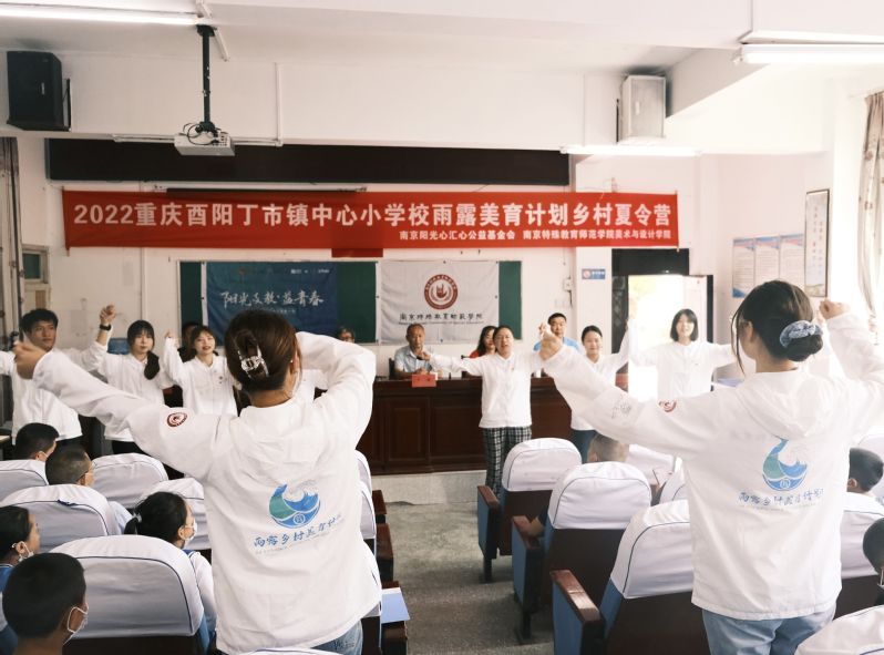 南京特殊教育师范学院利用学校师范专业优势,十年专注乡村教育的支持,此前已成功举办过暖阳融合教育乡村夏令营、融爱在行动——百所希望小学乡村支教等多项大学生暑期社会实践公益活动。此次由美术与设计学院发起的雨露美育乡村夏令营旨在发挥美育功能,以美术教育推广为主题核心,乡村夏令营为手段,关注留守儿童和困境儿童,通过特色课程,加强乡村儿童对家乡的认同感,促进乡村振兴。该美育乡村夏令营将围绕青少年的身心成长、艺术素养、文化传承等方面,开设传统文化、当地特色、环保创新、艺术疗愈四个板块,将知识性与教育性相结合,通过丰富多彩的形式帮助孩子们拓宽视野、强身健体、增强动手能力。夏令营期间,志愿者们秉承博爱塑魂的校训精神、勤勉踏实的教学态度、兢兢业业的敬业精神,在服务中实现大学生的人生价值,用实际行动去传播青春的正能量,为乡村孩子们拓展广阔蓝天,让他们放飞伟大理想,拥抱更好的明天!