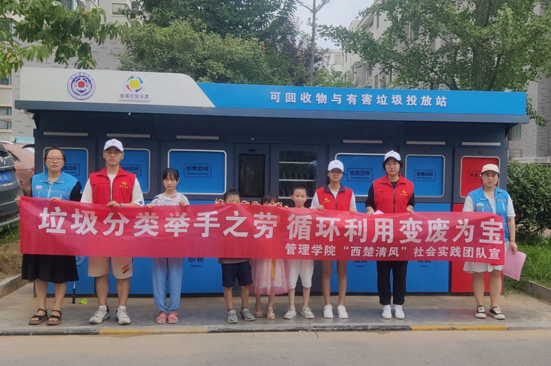 7月15日至28日,管理学院西楚清风团队踊跃参与暑期实践活动,前往江苏省宿迁市康庭茗苑,开展以“垃圾分类”为主题的各项活动,并宣传垃圾分类相关内容,帮助社区更好地适应新时代发展潮流。旨在全面落实习近平新时代中国特色社会主义思想、党的十九大精神以及习近平总书记关于生活垃圾分类工作的系列重要指示精神。牢固树立发展理念,深入贯彻习近平总书记提出的有关垃圾分类的重要指示精神、强化问题意识、结果导向与节约理念。