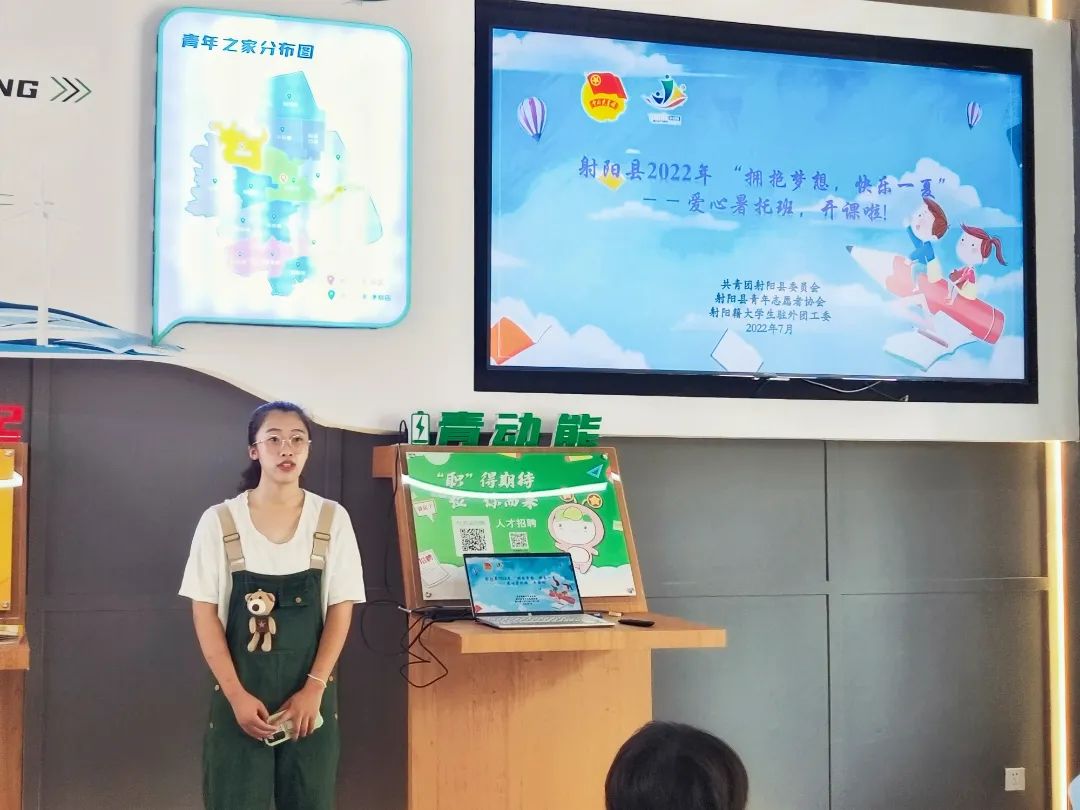 为引导和帮助全县中小学生,积极响应江苏省共青团委员会号召,落实“梦想改造+”计划,语言学院“萤火计划”志愿服务团队联络家乡共青团射阳县委,于7月12日至22日在江苏省盐城市射阳县开展一系列面对青少年学生的“爱心暑托班”暑期志愿服务活动,并于7月12日上午举行开班仪式。