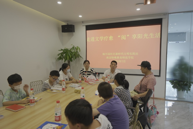 为推广文学疗愈,丰富社区青少年的暑期生活,以切实行动落实全民阅读倡议。7月18日上午,语言学院“白桦林”文学疗愈团队师生在迈皋桥街道瑞丰园社区工作人员的配合下,开展“走进文学疗愈,‘阅’享阳光生活”暑假阅读班教学活动。