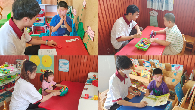 其他成员通过在实践活动中观摩学习园所教师的个训内容,在学习过程中深刻认识到不同幼儿之间的个性差异之大,与指导老师细心沟通了解小朋友们的情况,从而制定教学计划并进行了语言康复训练、行为情绪训练、认知理解训练等方面一对一的个别化教学。在观摩课程的过程中,团员们向老师请教,虚心学习知识,不断丰富自己的知识储备和提高自身能力。除了正常的教学生活,队员们在课后参与园内环创的制作,完成了不少环境创设作品,通过实践增强了作为学前教育专业同学必备的手工设计技能,当看到自己动手完成的作品后,大家感受到满满的收获感和成就感。