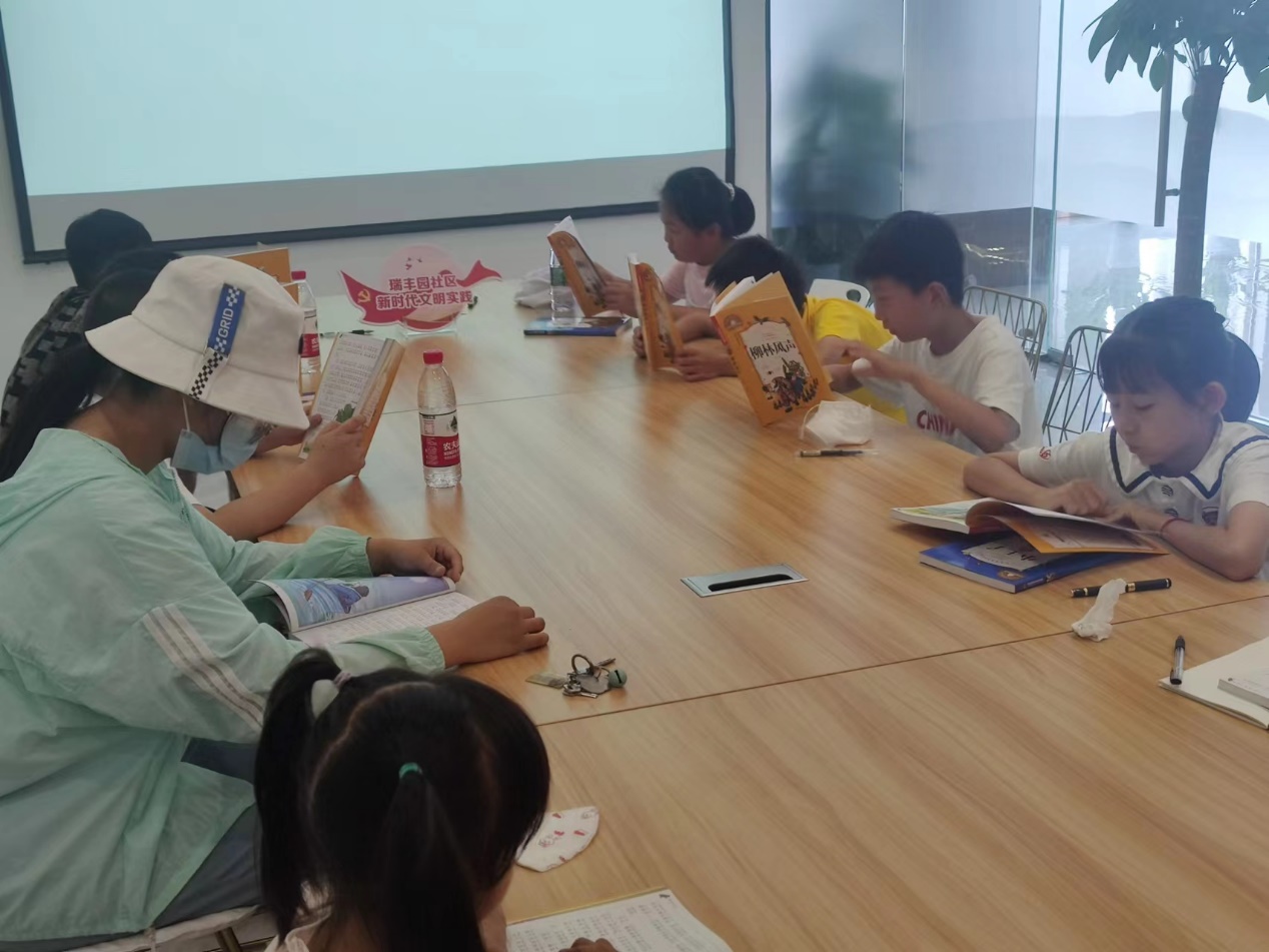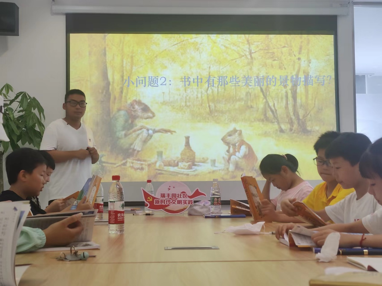 7月25日上午,为积极响应教育部号召,发扬新时代青年创新创造精神,语言学院“白桦林”文学疗愈团队全力以赴,持续在社区开展暑期“走进文学疗愈,‘阅’享阳光生活”线下列活动。经过一周的课程打磨,“白桦林”团队再次来到迈皋桥瑞丰园社区党群服务中心,带领社区的孩子们一起阅读儿童文学佳作《柳林风声》。