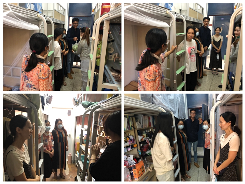 走访期间,康复科学学院党总支书记吴洪菊详细地询问了留校同学在学习、生活等方面的情况,吴洪菊书记肯定了同学们克服高温天气按时去医院实习,刻苦学习专业技能的精神,并叮嘱同学们在上下班路上一定要注意安全,遵守学校和实习医院的防疫规定。副院长王姣艳询问了留校同学的相关实习安排,希望同学们能够保持以积极认真的态度参加实习,抓住机会,提升本领,增强专业技能,为今后的就业做好充足准备。党总支副书记吴填耐心地询问了留校同学在学习和生活上是否存在困难,叮嘱学院学工战线的老师要多关心每一位留校学生的生活,将服务保障工作做细做实。