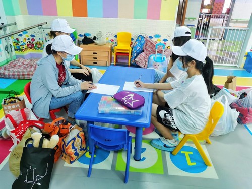 为呼吁社会关心,关爱孤独症儿童,2022年8月27日,数学与信息科学学院“鼓楼暑期社会实践团队”联合友邦仁和志愿者联盟共同开展“关爱星星的孩子,公益捐赠一起手工”——呵护孤独症儿童公益活动。