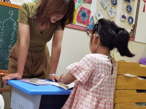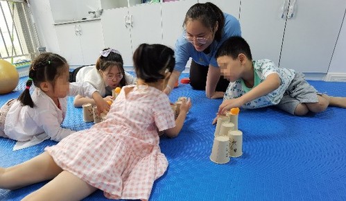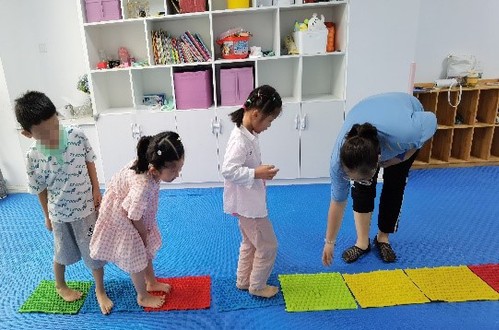 经过老师介绍以及团队成员参观后,朱老师安排实践团成员分别进入不同的教室进行听课学习,在不打扰老师授课的前提下,与特殊儿童进行比较亲密的接触学习。其中有一堂课老师给孩子们教授8和9的加减,个性化地给每个孩子提前定下了不同的教授方法和学习目标,并且检验学习结果的方式也因人而异。最特别的是感统训练课程,在团队成员陪同孩子们完成各个小游戏的同时,孩子们在娱乐中就能锻炼到特殊儿童的平衡感、手眼协调能力、较好的粗大动作和精细动作控制能力等等。