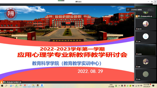 心理学系的新入职教师试讲活动则采用线上会议的方式进行,由心理学系主任黄晶晶主持,心理学系全体教师参加。承担心理系课程的4位新进教师以屏幕分享的方式呈现了15分钟左右的教学片段。教师们对所讲内容认真钻研,表达规范,声音洪亮,吐字清晰,体现出良好的专业素质和知识水平。心理学系全体教师围绕教学片段进行广泛而深入的研讨,并给每位新进教师提出了宝贵的意见和建议。