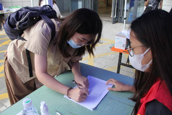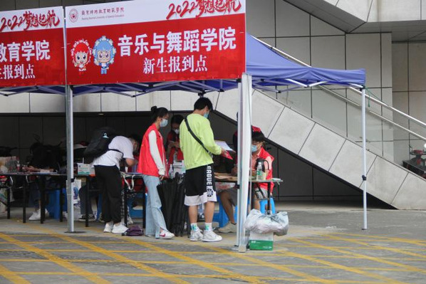 秋风送爽,我校音乐与舞蹈学院迎来2205专转本班新生。8月31日上午,迎新工作开始,志愿者们负责检查新生报到所需的录取通知书、身份证、毕业证书、健康申报表、个人防疫行程卡,以及收取档案及团关系材料。本次迎新工作按照学校疫情防控要求部署,迎新老师有条不紊地开展迎新工作,志愿者们负责引导接待、防疫检查、行李转运等服务工作。迎新服务工作共设置4个岗位。学校南三门设立新生入校报道岗,志愿者与老师负责将新生引导至接待岗和引导岗,并协助进行核酸检测工作,老师带领新生签字报道后,送学生前往宿舍。