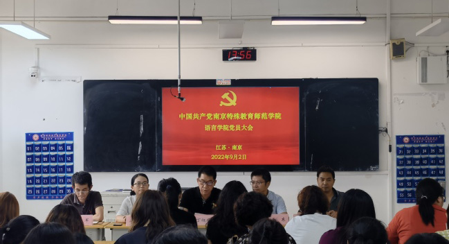 9月2日下午,语言学院召开党员大会,选举产生出席中国共产党南京特殊教育师范学院第二次代表大会代表。学院教师党员和学生党员代表共同参加会议,本次大会由学院党总支副书记丁祖保主持。