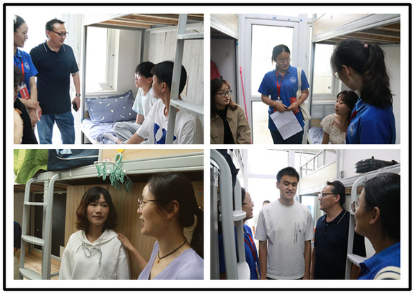 张强院长、蒋科星书记和徐慧娟老师深入2022级学生宿舍,给同学们送去了爱心大礼包。老师们也提醒学生尽快整理好宿舍,调整好作息,合理安排好学习和生活,做好新学期的学习规划,并以积极的态度、崭新的面貌投入到新校园的生活与学习中。