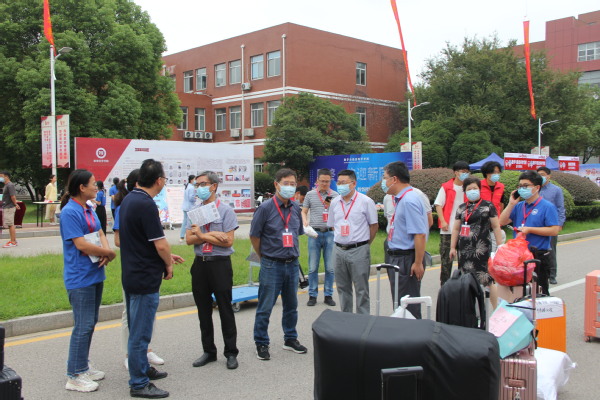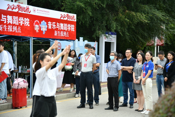 校党委书记黄军伟、校长王立新等校领导和相关职能部门负责人来到迎新现场,了解音舞院新生报到情况,关心慰问报到学生,与新生亲切交谈。张茂林副校长向新生赠送爱心礼包,勉励新生立志成人成才,积极适应新环境。
