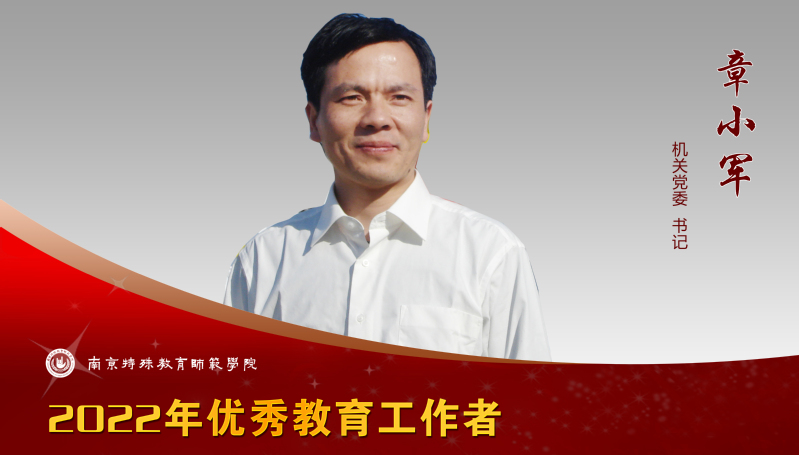 机关党委书记章小军认真践行“以生为本、以爱为铭”,倾心倾力服务师生。在特教学院担任党总支书记期间,谋划推进“塑博爱之魂,兴博学之风,做博雅之师”主题教育实践活动,打造“三博教育”学生工作品牌。在学工处担任处长期间,以围绕学生、关照学生、服务学生为基本遵循,贯彻“立足一个主题、打造一批亮点、建好一支队伍”工作思路,坚持开展主题系列活动,强化思想价值引领。