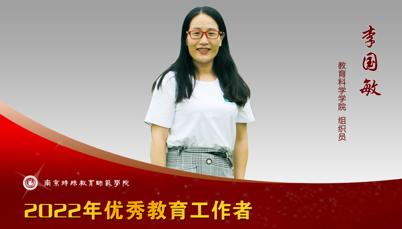 2009年8月,教育科学学院的李国敏成为大学生辅导员,12年来,她累计带学生1300余人,她始终热爱学生工作,努力做好学生的“人生导师”和“知心朋友”。在她看来,辅导员工作是神圣的。她说:“学生是我人生路上最动人的风景,和青年在一起,永远年轻,永远热泪盈眶”。她发挥专业所学,长期担任校心理健康教育中心兼职心理咨询师,长期从事校大学生心理咨询工作。