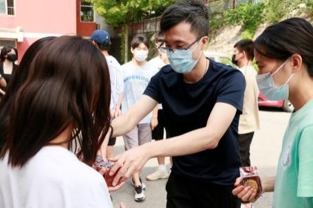 林敏老师作为新生辅导员向全体新生送上祝福,她表示:“今年的中秋意义非凡,在过去的日子里,各位新生都是与父母一起度过中秋节;而今年很多同学第一次远离父母,远离家乡,来到我们充满爱的校园,这可能不是大家心目中最圆满最开心的中秋节,但是在以后回想起来的时候,一定是集体度过的最难忘的中秋节。”副班同学向其他各位同学分发月饼。辅导员老师与同学们亲切交谈,关心同学们在校的学习生活情况,并代表学院向各位同学致以节日的祝福,希望同学们做好个人疫情防护,安心在学校里学习成长。