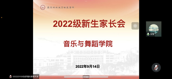 为进一步加强家校协同育人工作,形成目标同向、资源同聚、施教同心、经验同享的育人格局,共同做好音舞学院2022级本科新生的培养教育工作,9月14日晚上7点,音乐与舞蹈学院举行了2022级新生线上家长会。院长张强、党总支书记蒋科星、副院长连赟、团总支副书记(学工办副主任)徐慧娟以及2022级全体新生家长参加了本次会议。会议由徐慧娟老师主持。