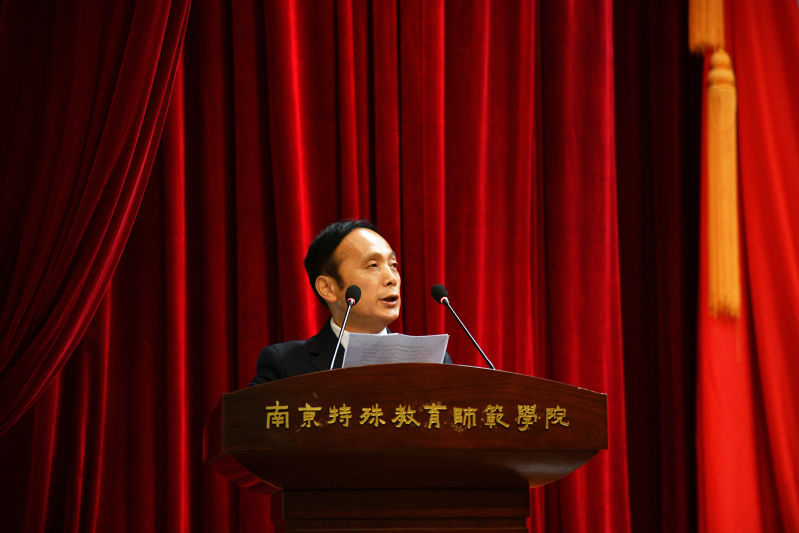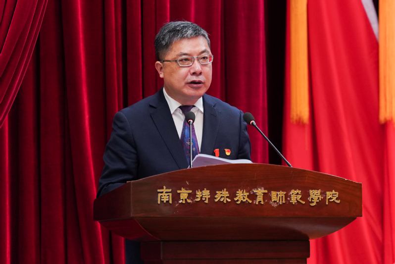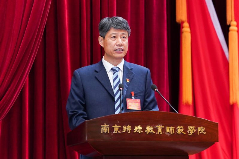 黄军伟书记代表中国共产党南京特殊教育师范学院第一届委员会向大会作了题为《特色融通 创新开放 为办好人民满意的特殊教育勇毅前行》的报告。