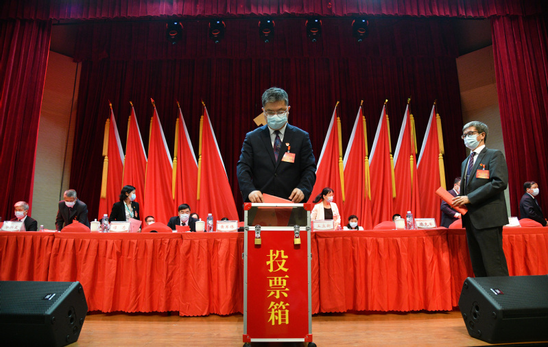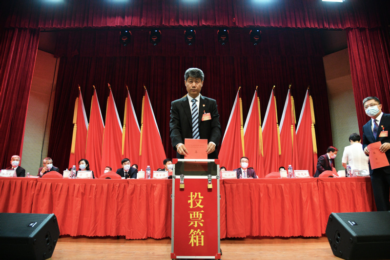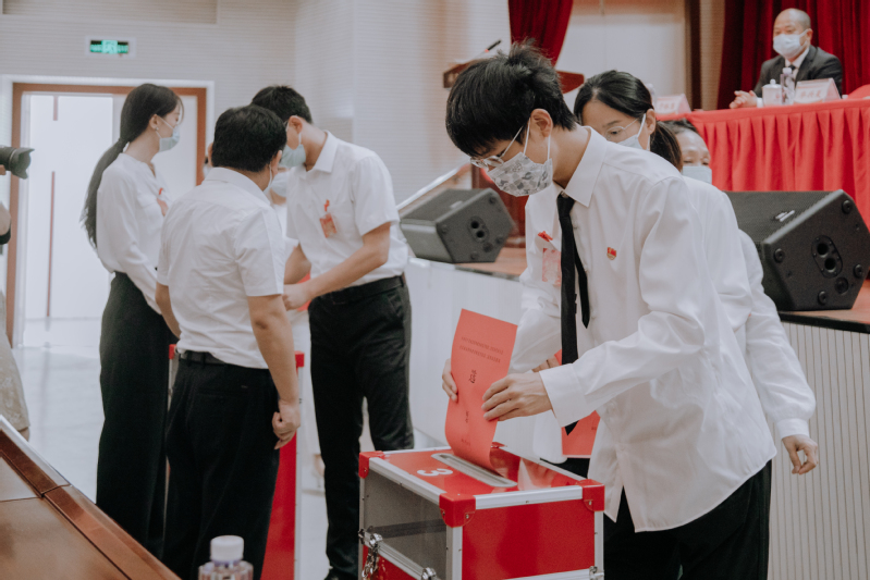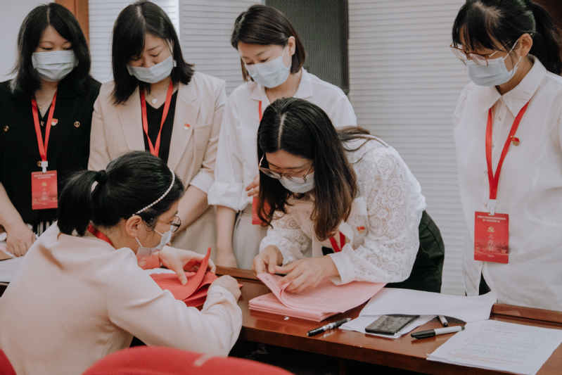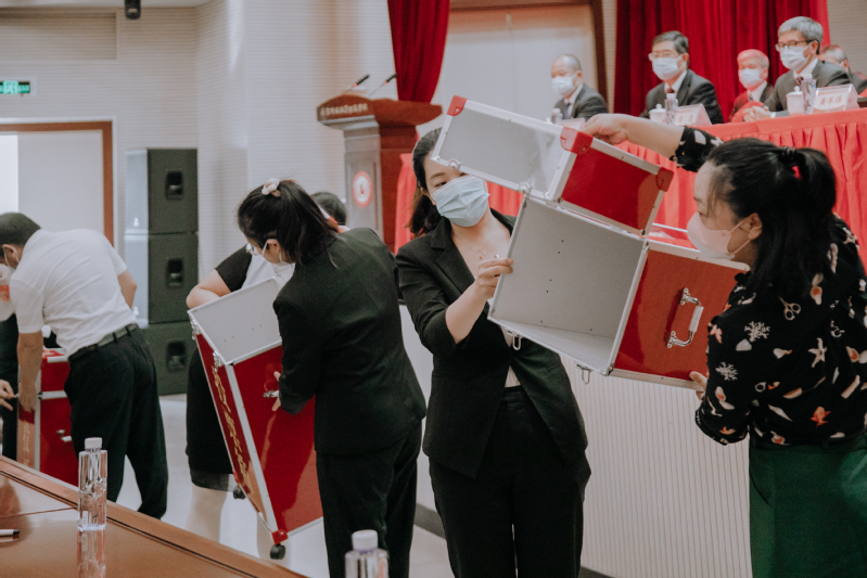 现场气氛庄重热烈,井然有序。代表们认真履行代表职责,积极行使民主权利,仔细填写选票,投出自己庄严神圣的一票。