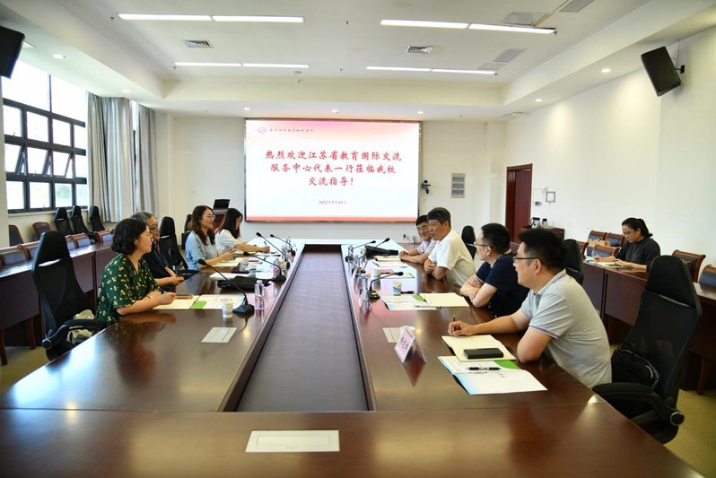9月19日,江苏省教育国际交流服务中心主任刘炼群、副主任王小丹、高等教育国际交流部部长助理张莹、高等教育国际交流部项目主管杨翠琨一行来我校交流指导。我校党委书记黄军伟,党委常委、副校长吴彬江,党委办公室、对外合作与交流处负责人出席本次会议。