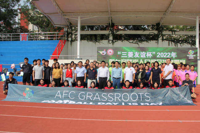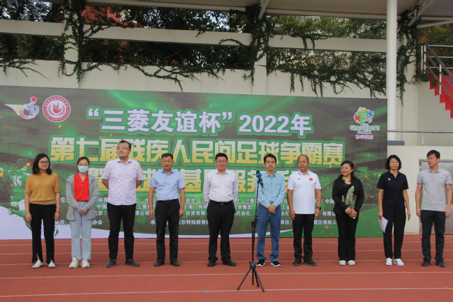 9月25日,正值国际聋人节,“三菱友谊杯”2022年第七届残疾人民间足球争霸赛暨我校聋人女子足球比赛在栖霞校区足球场举行,校党委常委、副校长陈克军,校党委常委、纪委书记于林惠,江苏省残疾人文化体育指导中心主任叶霆,南京市残疾人联合会宣文处副处长石珺,南京市栖霞区残疾人联合会副理事长王红雨,以及校团委、二级学院相关负责人出席开幕式。