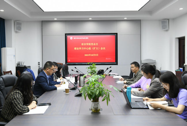 10月5日下午,语言学院党总支召开理论学习中心组(扩大)学习会,专题学习《习近平谈治国理政》第四卷“共产党就是给人民办事的”内容。会议由学院党总支书记丁祖保主持并领学,语言学院理论学习中心组成员及全体行政人员参加。