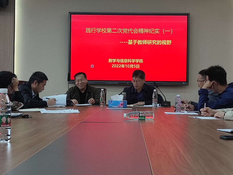 学校第二次党代会结合学校发展实际,为全校教职员工描绘了一个光明的蓝图,指明了未来五年乃至更长时期的奋斗目标。为深入学习贯彻学校第二次党代会精神,数学与信息科学学院遵循“丰富认知”——“融通情感”——“内化践行”的总体思路,创新学习方式方法,逐步引导全体教职员工将党代会精神有效融入到实际工作中。