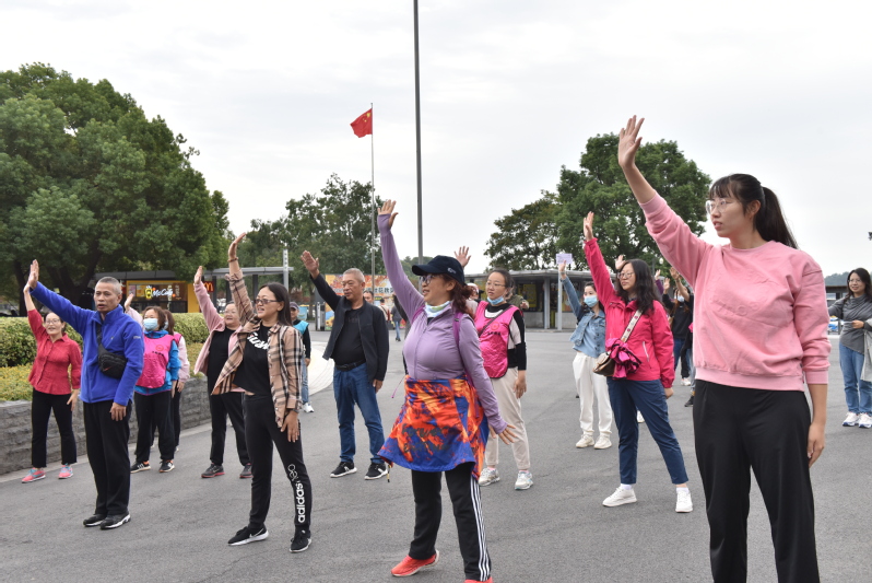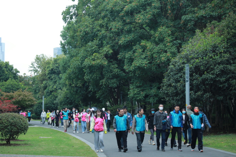 本次环湖健身走活动从解放门出发,沿途共设置四个打卡点,大家沿环湖路,经玄武门、新模范马路门、和平门,最终到达南京火车站。为增强互动性,提高大家的参与性和积极性,本次活动增设了趣味运动环节,包括玄武门打卡点“青春舞动”活动和明渔鲜打卡点“跳长绳拾童真”活动。