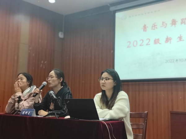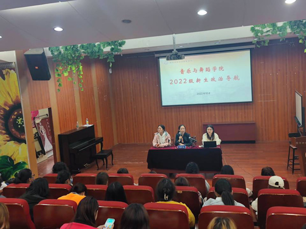 为了使新生更快更好地融入音乐与舞蹈学院,提高政治素养,音舞学院于2022年10月11日晚上在110音乐厅开启新生政治导航。党总支书记蒋科星、团总支副书记(学工办副主任)徐慧娟、学生党支部书记胡祖倩以及2022级全体新生参加会议。