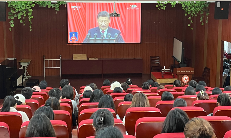 我校党委高度重视,在栖霞、江宁和浦口三个校区各报告厅、会议室、教室等地设置39个线下会场,党委书记黄军伟,党委副书记、校长王立新等全体校领导同1762名党员干部、师生员工共同收看了党的二十大开幕会盛况。同时,各二级党组织组织广大师生员工通过电视、网络直播等形式收看实况直播。
