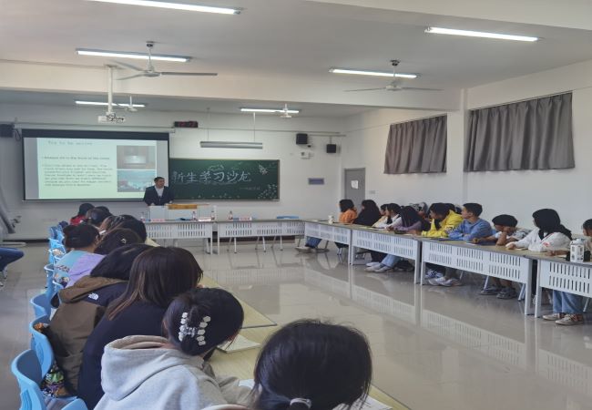 为增进2022级新生对大学学习的适应,准确建立大学生的自我认识,熟悉大学阶段的学习方法,树立远大职业理想,特殊教育学院于10月15日下午,在江宁校区教学楼D302教室举办以“成为更好的自己”为主题的2022级新生学习沙龙。特邀南京航空航天大学外国语学院副院长徐以中教授做主旨交流,特殊教育学院副院长张伟锋博士和刘凯毅老师出席,40余名新生代表参加活动。