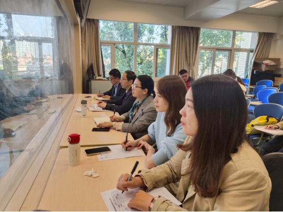 参观结束后,双方在会议室开展了交流。徐琴芳副院长希望双方能在融合教育、人才培养等方面开展深度合作。两位授课教师对各自的课堂进行了说课,丁祖保书记和徐琴芳副院长点评两位青年教师的授课,给予高度评价。通过交流,高校教师对聋生的英语教学有了全新的认识,尤其是“去手语的聋生英语口语化教学”,这个“口语班”的建立,让聋校不再“沉默”。英语教研组长张小勇老师表示,聋校的老师们在教学中能和学生有真实的交流,更加包容、有耐心,学生具有安全感,就会更加愿意表达。针对学习能力强的部分聋生,教师给予学习方法的指导,增加口语产出的实践机会,提高他们的听说能力。