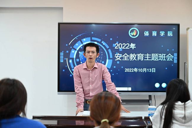 10月13日晚,体育学院召开安全教育主题班会,扎实做好学生安全及疫情防控工作,营造安全、和谐、稳定、健康的校园生活环境,切实提升学生的安全意识和自我保护能力。班会由学院直属党支部副书记谢军主讲,2020级、2021级全体学生及班主任参加。