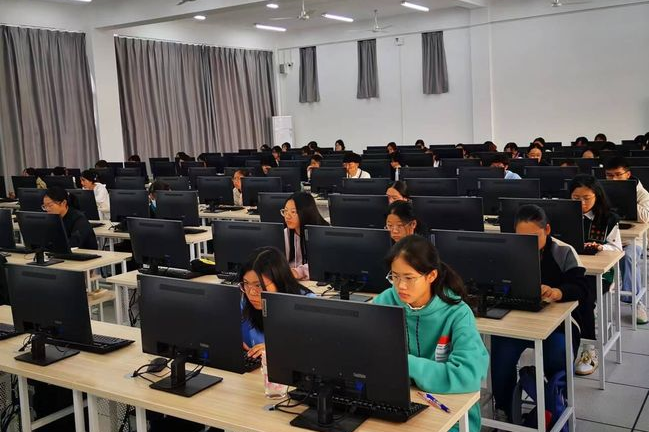 比赛过程中,学生们个个争分夺秒,奋笔疾书,敲击键盘的声音此起彼伏,热情高涨。随着倒计时的结束,比赛进入了系统评选环节。
